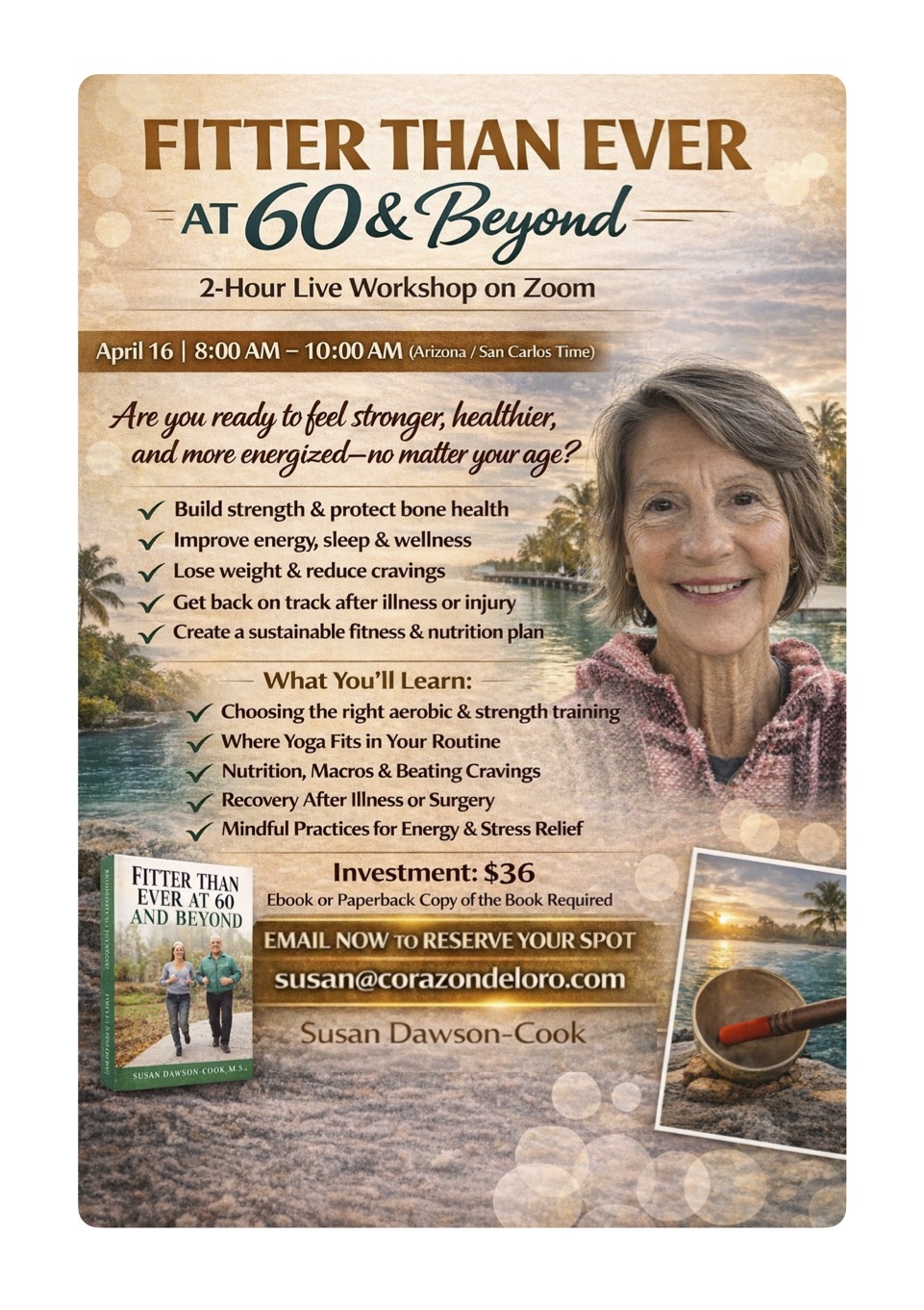 Please join this interactive Fitter Than Ever book discussion with Susan. Some premises of this workshop are 1) your golden years can be the best years of your life 2) comfort and freedom in your body is a possibility – it’s natural for you! 3) it’s never too late to make positive changes that will greatly improve your quality of life.